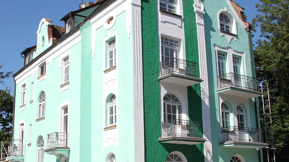 Die Details erhalten Das Ergebnis strahlt in Tannengrün, Mintgrün und Weiß an der Jugendstil-Villa im Staatsbad. Das Haus in der Wernarzer Straße ist ein Blickfang - und das liegt nicht nur an den ungewöhnlichen Farben.