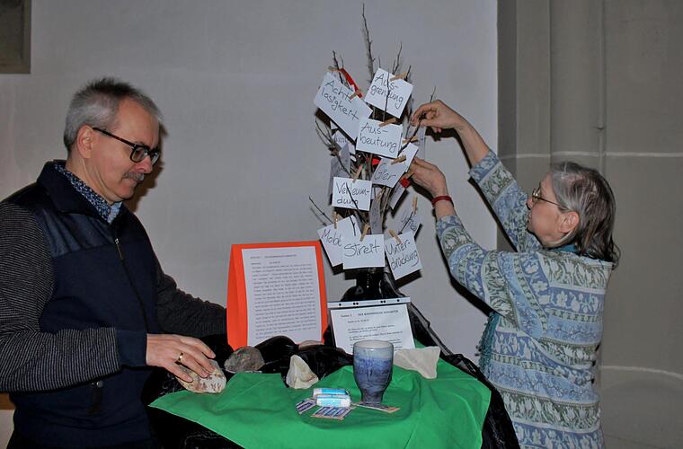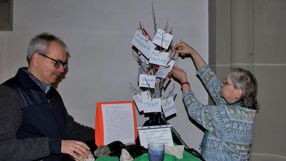 Erstmals in Bad Kissingen und bewusst in der österlichen Bußzeit wird die Versöhnung, ein zentraler Begriff in der Bibel, in der Pfarreiengemeinschaft Herz-Jesu, Quelle des Lebens mit einem inneren Kirchenweg thematisiert. Den sieben Gleichnissen Jesu hat der Initiator des geistlichen Weges, Diakon Christoph Glaser, eine achte Station hinzugefügt. An dieser "Versöhnungsstation" steht eine Tafel, die einlädt, eigene Gedanken aufzuschreiben. Aber noch aus einem anderen Grund macht gerade dieser letzte Halt den Rundgang durch die stille Kirche zu einem starken Erlebnis.