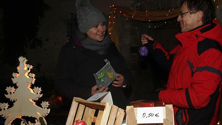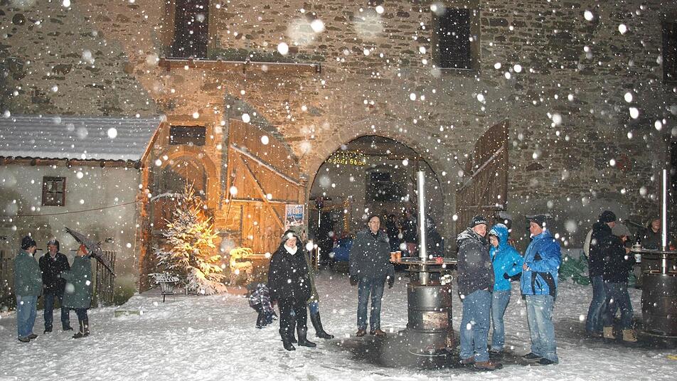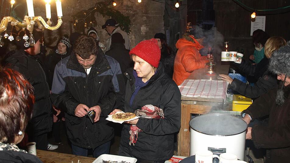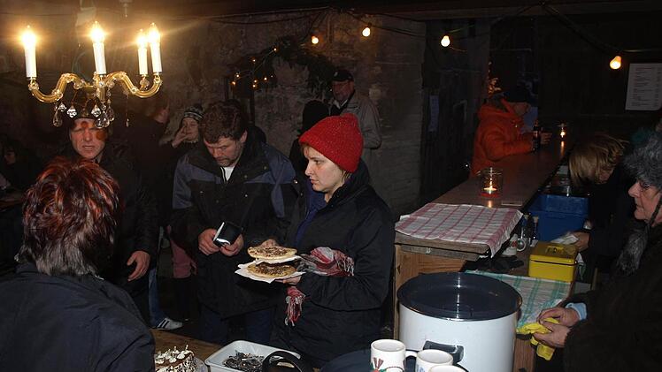 Eine Woche lang richteten Mitglieder den Schlosshof her: Sie kehrten Hof und Scheune aus, stellten Christbäume auf, dekorierten Tische und Wände, hängten Lichterketten und -netze auf und strahlten die Silhouette des Schlosses an. Im Südflügel der großen Scheune bauten sie die Verkaufsausstellung auf, in einem Gewölbekeller richteten sie Aufenthaltsraum und Ausgabezone für Getränke und Speisen her. "Das Schloss lockte viele Gäste an. Wir sind froh, dass auch die Ebenhäuser so zahlreich mitmachten", sagt Vorsitzender Andreas Back. Jutta Markert ergänzt: "Wir sind sehr, sehr zufrieden.