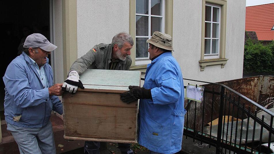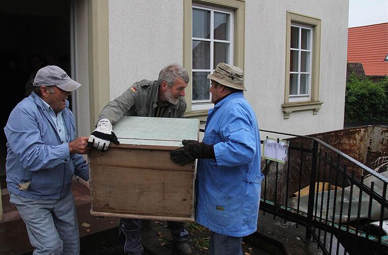 Weit über ein Dutzend Freiwillige haben mit angepackt. Jung und Alt, Männer und Frauen, Vereinsmitglieder und Leute ohne Vereinszugehörigkeit: Bei der Aufräumaktion rückte ein ganzes Dorf zusammen. Die beiden Sperrmüllcontainer füllten sich schon nach einer Stunde mit alten Möbeln und einer Menge "Gerütsch". Die Sachen lagerten auf dem Dachboden, in einem Abstellraum und im Keller.