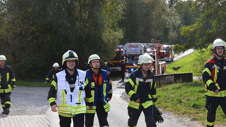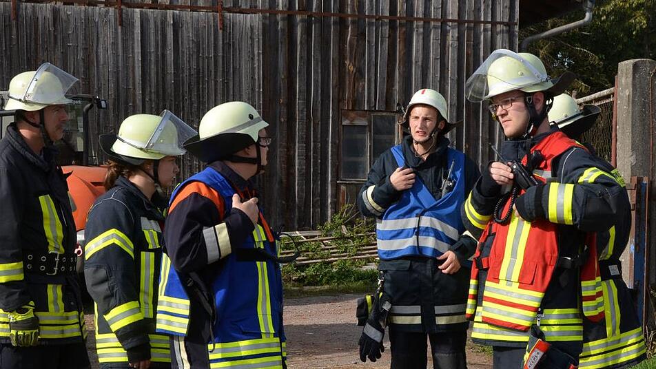 Eine Großübung wurde auf einem Aussiedlerbauernhof zwischen Nüdlingen, Haard und Hausen angesetzt.