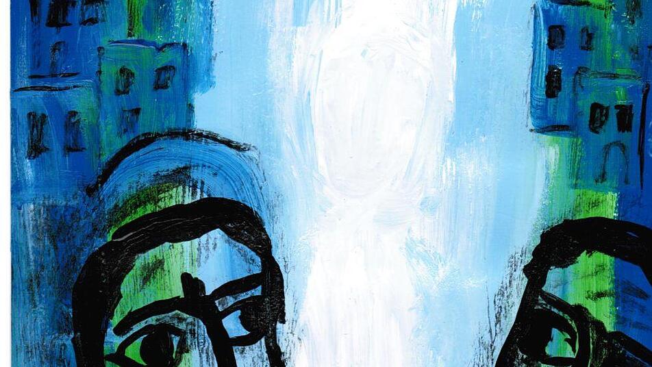 Während der Zeit der Coronapandemie hat sich die Malerin in besonderer  Weise mit dem Kreuzweg auseinandergesetzt und die klassischen Stationen  gemalt. Als Zeichen der Hoffnung entstanden in der Osterzeit Bilder der  Auferstehungserzählungen. Dabei geht es vor allem um die Interaktion  biblischer Figuren mit dem heutigen Leben. Die Originale sind mit Acryllack auf Papier gemalt, zu sehen sind  Fotodrucke hinter Acrylglas. Im wahrsten Sinne des Wortes nehmen die Bilder im Chorraum Platz auf den  Sedilien des Chorgestühls und bringen somit zum Ausdruck, dass sich die  biblischen Szenen auch in der heutigen Zeit ereignen und somit ihren  "Sitz im Leben" haben.