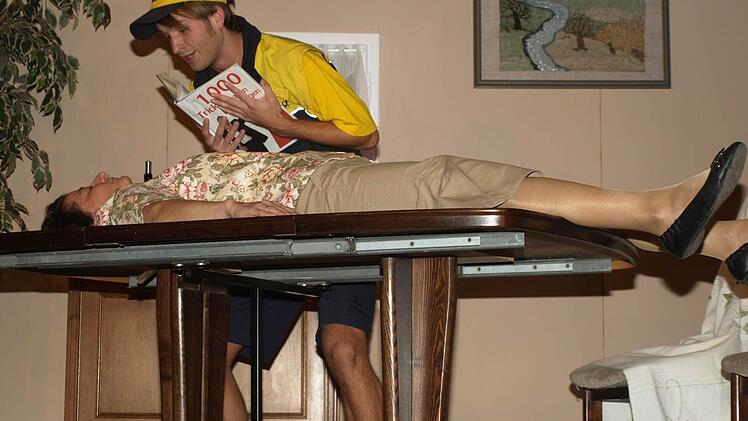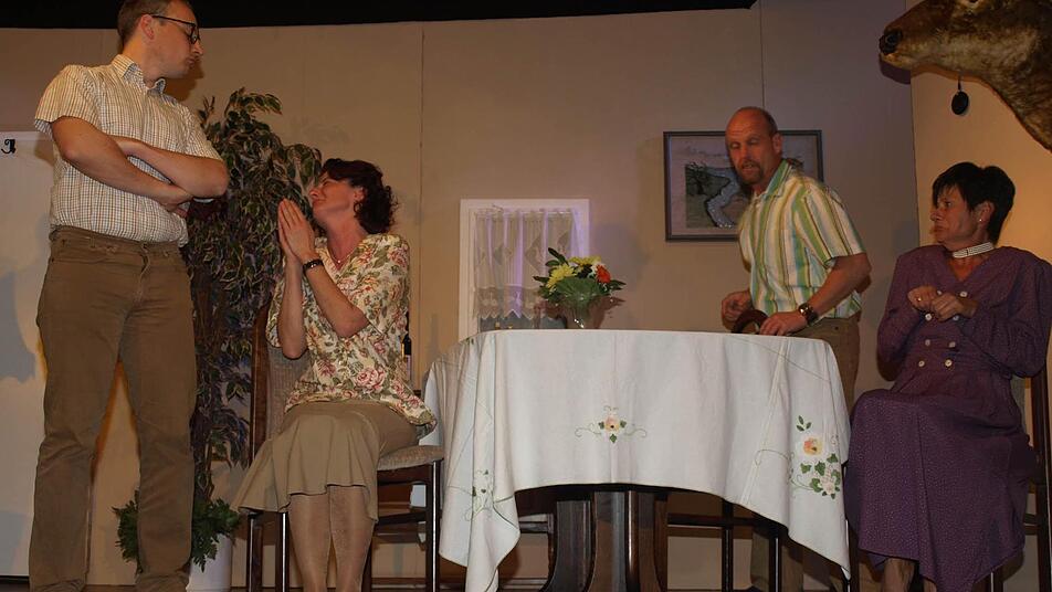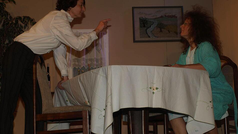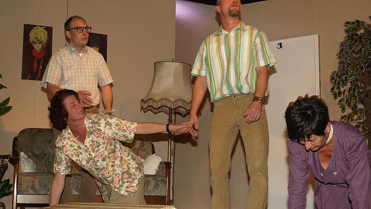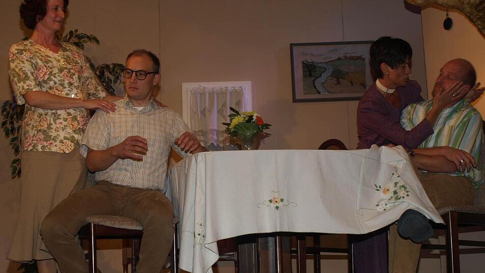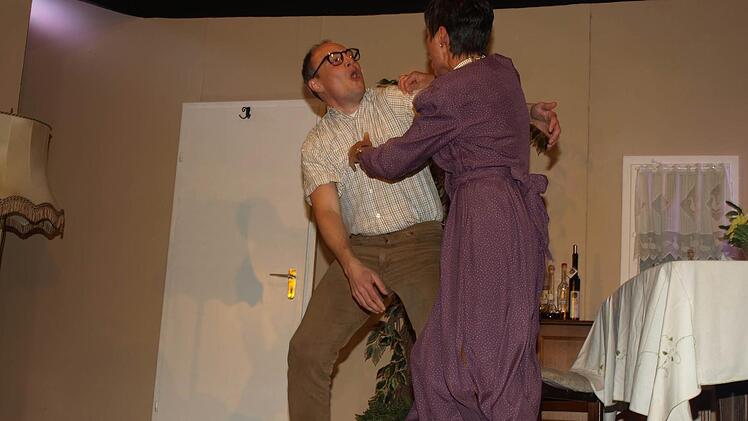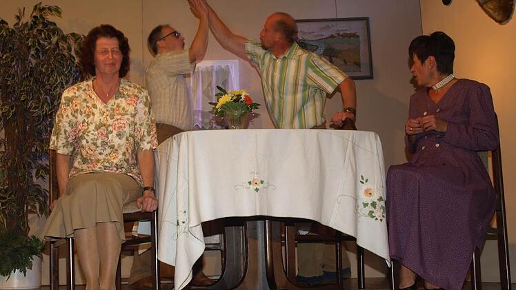 In dem Dreiakter von Ute Tretter-Schlicker ging es von Beginn an drunter und drüber. Die befreundeten Ehemänner Rudolf (Fabian Wahler) und Heinz (Holger Zwirlein) stehen ganz unter dem Pantoffel ihrer resoluten Ehefrauen Gerda (Ulrike Breuter) und Hedwig (Monika Rettke). Rudolf meint zwar, nach seiner Kur aufmucken zu können, wird aber rasch zurechtgewiesen: "Zieh die Schürze an und putz endlich!"