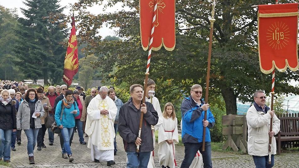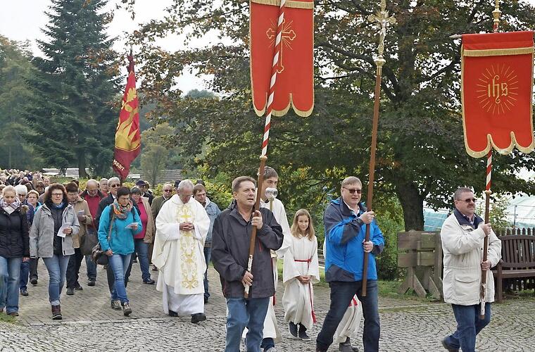 Nach einer Prozession rund um die Klosteranlage zogen die Wirtsleute in die Kirche ein. Zum Ankommen gehöre es aber auch, angenommen und aufgenommen zu werden, so Pater Georg. Auf dem Kreuzberg werde ihnen jene Gastfreundschaft entgegengebracht, die sie täglich in ihren Gasthäusern den Menschen gewähren.