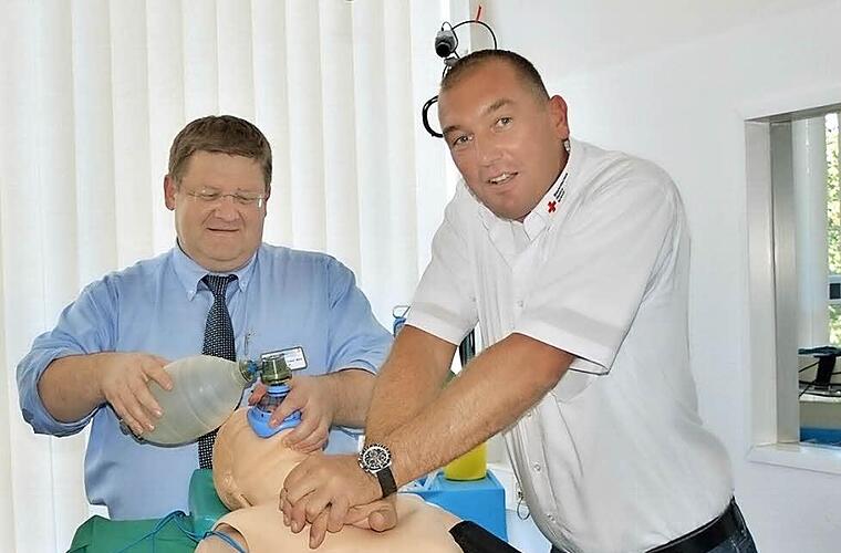 Frank Gietzen, Oberarzt der Kardiologie an der Herz- und Gefäßklinik in Bad Neustadt, "wenn die Rettungsdienstler sehen, dass keine lebenserhaltenden Maßnahmen ergriffen wurden". Wenn solche Maßnahmen beim Eintreffen der Rotkreuz-Helfer schon am Laufen sind, müssten diese dann "nur" übernehmen. "Da geht man ganz anders ran", sagt Heiko Stäblein.