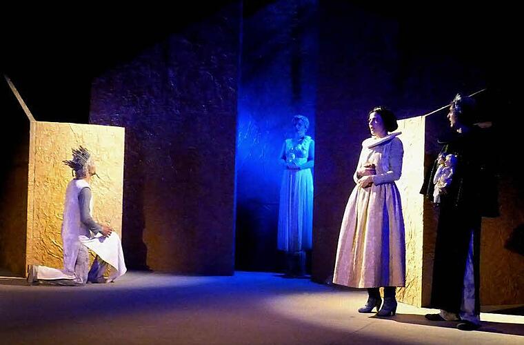 Das schafften trotz der geschickten Beleuchtung der klar strukturierten Bühne und der wunderbaren Kostüme aus einer Phantasie-Renaissance natürlich die spiel- und verwandlungsbegeisterten vier Mitglieder der Berliner Truppe, die sich die vielen Rollen teilen. Katharina Kwaschik spielte die verstoßene Königin Hermione von Sizilien als reife, verletzliche, abgeklärte Dame, deren fast erwachsene, unerkannt als Schäferskind in Böhmen lebende Tochter Perdita mit viel Einfühlungsvermögen in deren spätpubertäre Schüchternheit und den böhmischen Hofmann Archidamus mit der gerade nötigen Servilität.
