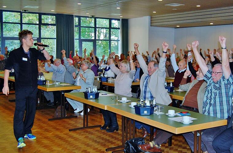 Dass Aktivität auch in hohem Alter sinnvoll ist, durften die Tagungsteilnehmer anschließend bei leichten Übungen im Sitzen und Stehen am eigenen Leib erfahren, bevor sie sich auf den Vortrag von Georg Nikisch wieder konzentrieren mussten.
