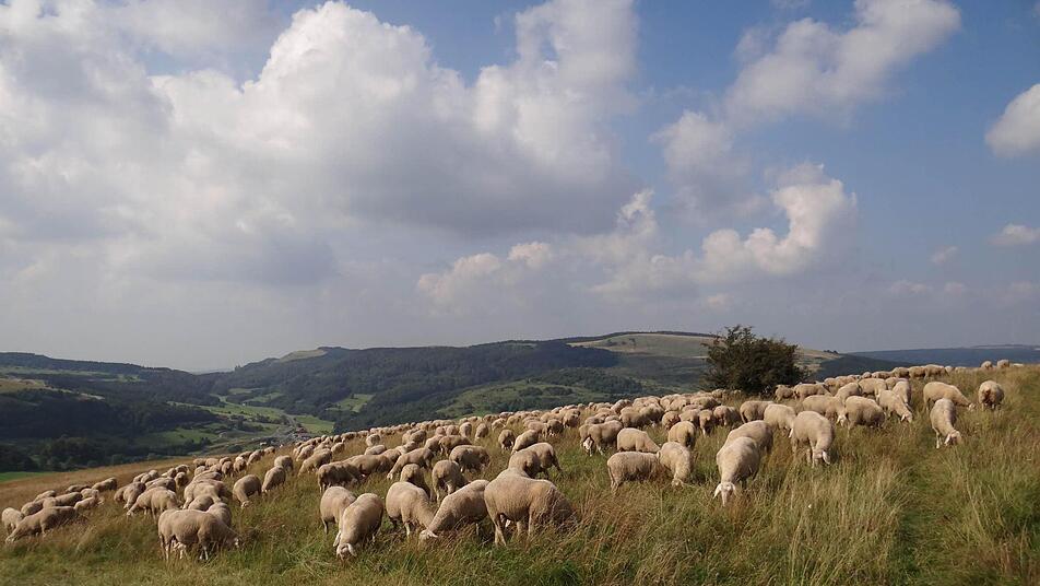 Schafprodukten Schaf-Landschaften in Rhön, Spessart, Saaletal sowie die Herbstweide im Schweinfurter Land. Christine Schormayer und Erich Hutzelmann sind Mitglied im Verein für Schäfereigeschichte e.V.