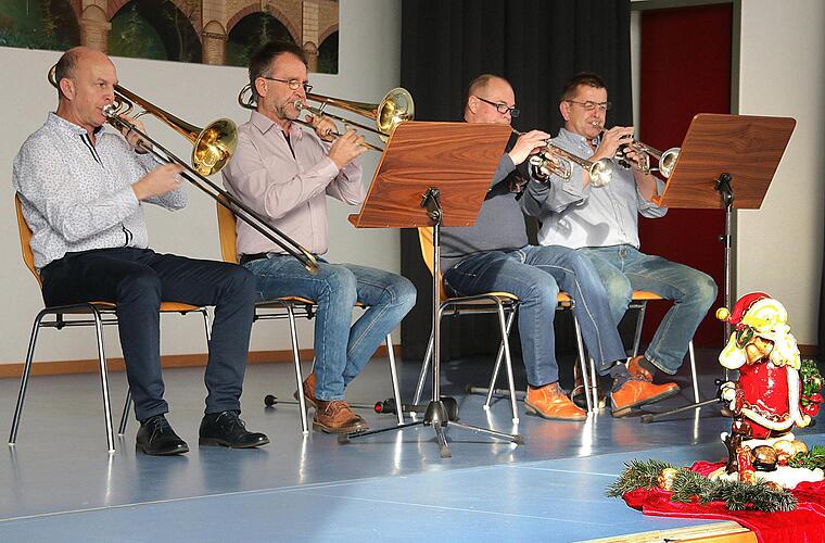Auch Pfarrer Michael Kubatko lobte, dass die BRK-Bereitschaft schon sehr lange diese Weihnachtsfeier ausrichtet: "30 Jahre sind schon ein Wort." Er hatte zur Einstimmung auf die Adventszeit einige Texte und Lieder mitgebracht und erwies sich dabei wieder einmal all exzellenter Gitarrenspieler. "Advent, du schenkst uns reichlich Zeit, um menschlich zu werden, Zeit, dass wir wieder zu uns finden" betonte er. Das Bläserquartett der Steinacher Musikanten unter Leitung von Jürgen Limpert ist seit 30 Jahren dabei.