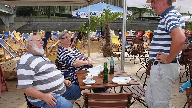 Ein zünftiges bayerisches Frühstück unter Palmen konnten die Leser der Saale-Zeitung am Samstag am Stadtstrand bei sommerlichen Temperaturen genießen. Dabei hatten sie die Gelegenheit, mit Redaktionsleiter Paul Ziegler, Geschäftsführer Alexander Subat oder mit den Redakteuren Thomas Mäuser und Thomas Schulze ins Gespräch zu kommen.