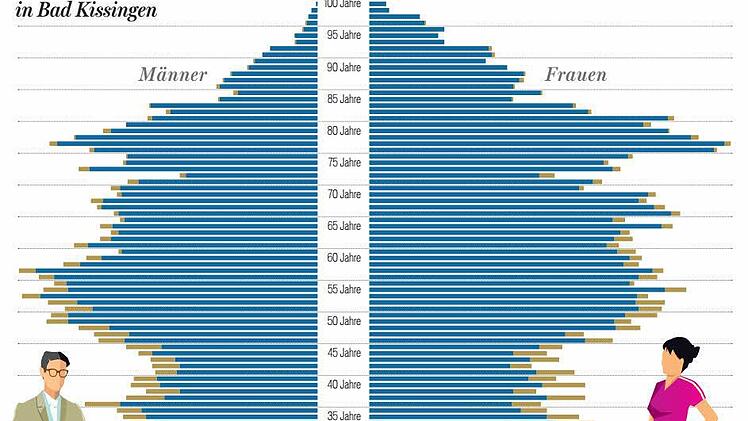 Jahrgänge Die frühere Alterspyramide, bei der die Zahl der Einwohner pro Jahrgang meist immer kleiner wurde, hat sich längst umgekehrt. Der "Pillenknick" und stetig sinkende Geburtenzahlen führen zu immer kleineren Jahrgängen: So feiern ihren 1. Geburtstag heuer nur 147 Kinder in Bad Kissingen, der größte Jahrgang ist seit Jahren der Jahrgang 1940 - aktuell mit 175 Männern und 236 Frauen. Danach folgen die Jahrgänge 1960 mit 387 und 1963 mit 386 Einwohnern. Zwischen 1936 und 1969 liegen die meisten Jahrgänge über 300 Einwohnern, ab 1999 fallen sämtliche Jahrgänge unter 200 Einwohner.