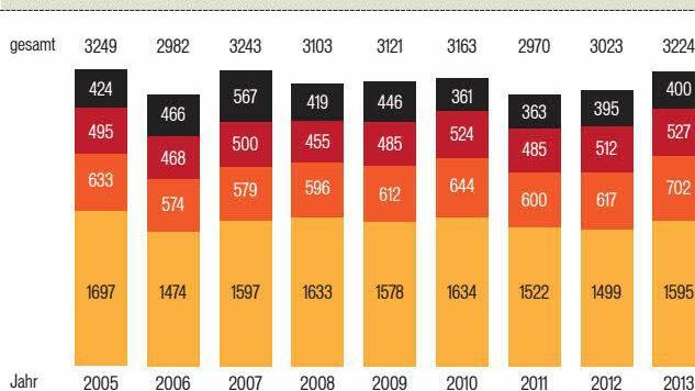 Kein eindeutiger Trend lässt sich aus der Unfallstatistik 2014 für den Landkreis Bad Kissingen herauslesen: Die Zahl der Unfälle hat zwar von 3224 um 5,7 Prozent auf 3041 abgenommen, liegt aber immer noch über dem Niveau von 2012 (3023) und 2011 (2970). Bei den Verletzten gab es im vergangenen Jahr insgesamt eine Zunahme von 8,1 Prozent auf 519, allerdings sank die Zahl der Schwerverletzten um 9,5 Prozent von 137 auf 124, die Zahl der tödlichen Unfälle halbierte