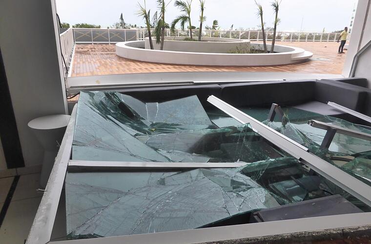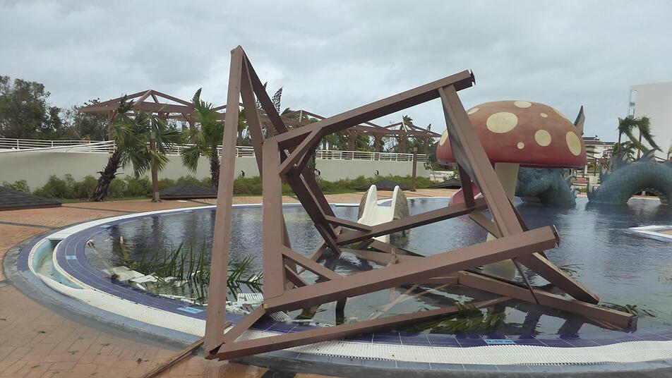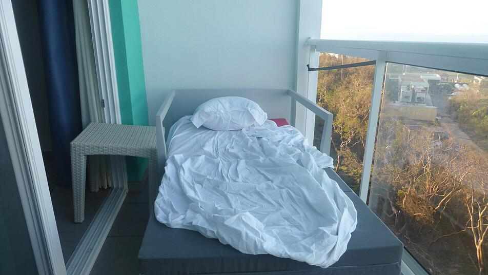 Am Mittwoch (6. September) wurden bereits die ersten Warnungen vor Irma ausgesprochen. "Da habe ich schon angefangen, nach einem Ersatzflug zu suchen", berichtet Hildmann, "das war dann aber zu kurzfristig und unsicher." Am Freitagmorgen wird plötzlich der ursprünglich geplante Rückflug storniert. "Andere Fluggesellschaften sind noch geflogen, vielleicht hing das auch schon mit den Krankheitsmeldungen der Airberlin-Piloten zusammen", vermutet Franco. Im Hotel kommt man nur schwerlich an Informationen. "An der Rezeption waren alle entspannt, alles sei sicher, wir müssen uns keine Sorgen machen." Doch der Sturm kommt von seinem prognostizierten Kurs ab, schwenkt nach Westen und trifft das neu gebaute Hotel in Varadero mit voller Breitseite. Als erste Maßnahme spricht die Hotelleitung ein Alkoholverbot aus, "damit man einen klaren Kopf behält." Die Gäste werden gebeten, auf ihren Zimmern zu bleiben und bekommen einige Sicherheitshinweise: Die Badewanne mit Wasser füllen, Snacks bunkern und nach Möglichkeit im Badezimmer aufhalten. In der gesamten Anlage werden die Fenster mit Klebeband gestützt, die Tische, Stühle und Liegen im Außenbereich werden aus Sicherheitsgründen im Pool versenkt und die offene Rezeption ist gezwungen umzusiedeln.