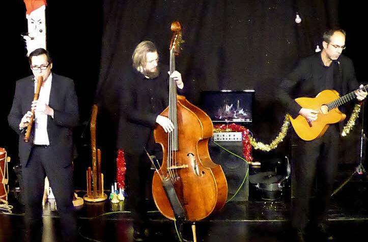 "Alle Jahre wilder" nannten sie ihr Vorweihnachtsprogramm und nahmen ihren Titel beim Namen. Denn die Melodien ganz vieler Weihnachtslieder tauchten brav auf, aber auch wieder ab in fetzigem Jazz, Pop, Punk und Swing. So ging es los mit "Ihr Kinderlein kommet", das aber von Anfang an mit jazzigen Synkopen nicht zurückhielt. In "Hirten in the Sun" zauberte nicht nur Reisige mit seiner Flöte, sondern die Hirten wurden vom Feld sehr schnell nach Südamerika versetzt, wobei Gitarre und Kontrabass für die passende Percussion sorgten.