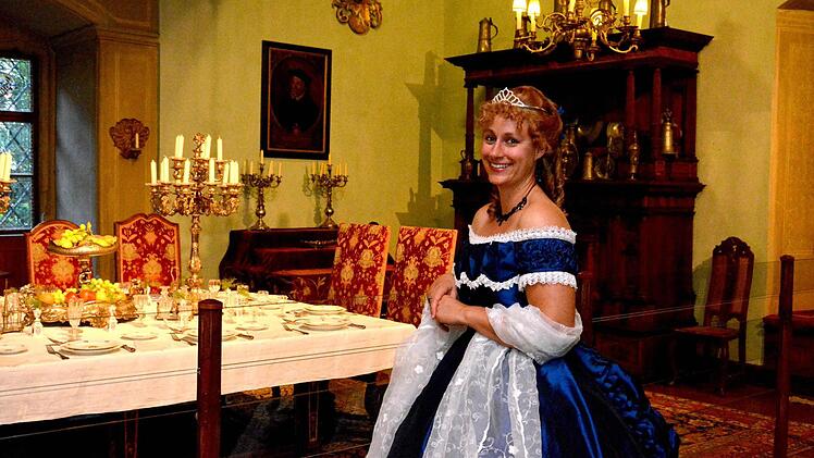 ausführliches Programm. In heimeliger Atmosphäre führte Louise Gräfin von Luxburg, die von Museumspädagogin Beatrice Rose-Ebel verkörpert wurde, die Besucher durch die Museumsnacht und sie wusste einiges aus der Grafenfamilie zu erzählen.