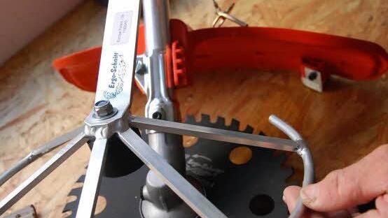 Drei Jahre lang hat er seine bisher erfolgreichste Erfindung entwickelt und erprobt. Heute hat er das Ergebnis einige Tausend Mal verkauft. Sein "Sicherheitsgrasschneideblatt" für Motorsensen ist inzwischen bei Straßenmeistereien in ganz Deutschland zur Pflicht geworden.