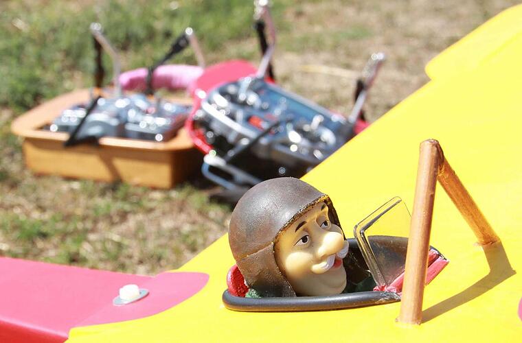 Zum Ferienprogramm des Oerlenbacher Modellsportvereins sind acht Jungs auf den "Heuberg" gekommen. Die Sonne brennt. Perfektes Wetter. Schatten gibt es auf der freien Fläche bei Ebenhausen nicht. Bäume stören bei diesem Hobby bloß. Frauen dagegen gar nicht, meint Walter Rügamer. "Die sind genauso technisch aufgeschlossen", sagt er. Zum 20.