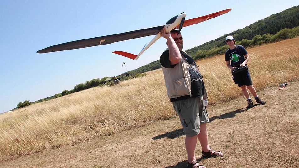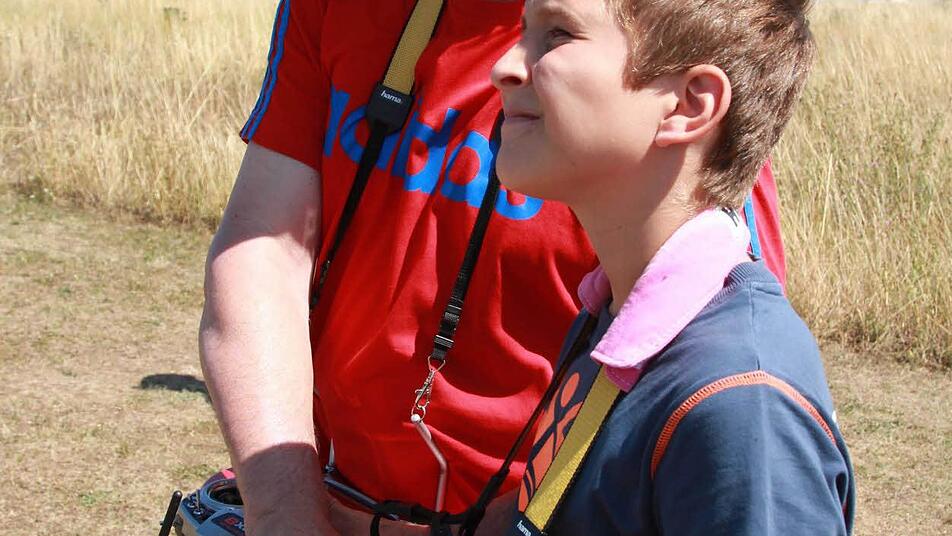 Alle Blicke nach oben. Nur kurz summt der Elektromotor. Das große Ziel: im Aufwind schweben. Sie jagen nach der Thermik. Beim Ferienprogramm wollen die Oerlenbacher Modellflieger ein paar Jungs mit ihrem Fieber anstecken. "Du musst versuchen, immer die gleiche Höhe zu halten", sagt Markus Dinnebier, er leitet den Verein der Modellsportler. Neben ihm steht Tom. Der Zwölfjährige aus Rottershausen hat nicht zum ersten Mal die Schalthebel zwischen seinen Fingern.
