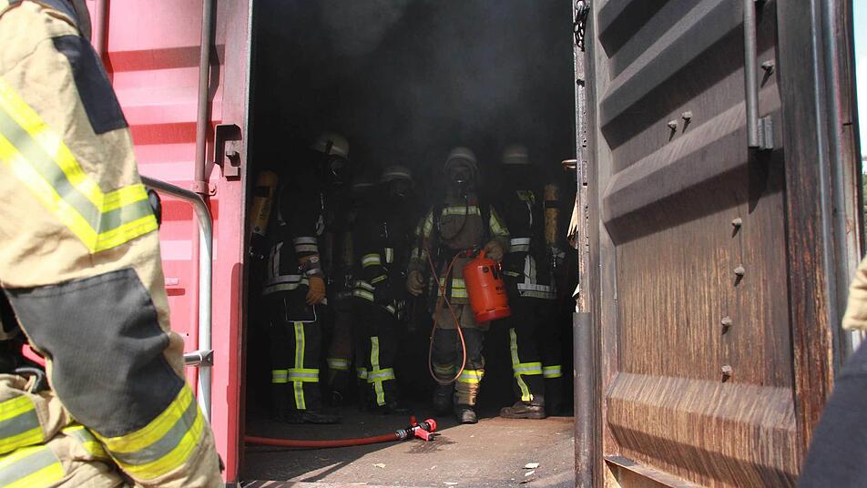 In einem Container trainieren Atemschutzträger aus dem Landkreis, wie ein Feuer entsteht und wie sie reagieren müssen. Ihre Ausbildung: überlebenswichtig.