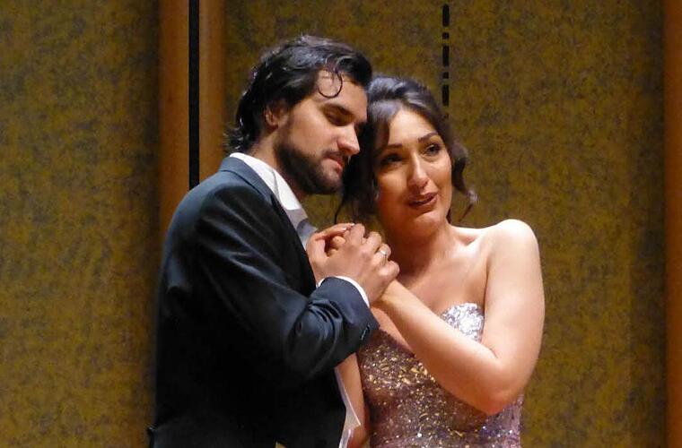 Gerade in den Duetten mit der Sopranistin Kristina Mkhitaryan bewies Valuzhin, wie viel leichter es ihm fällt, ineiner Spielszene wie dem dem Duett Gilda-Herzog aus Verdis "Rigoletto" auch die exponierten Höhen sehr tonschön zu singen.