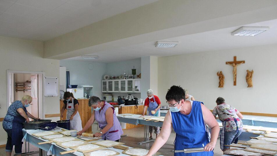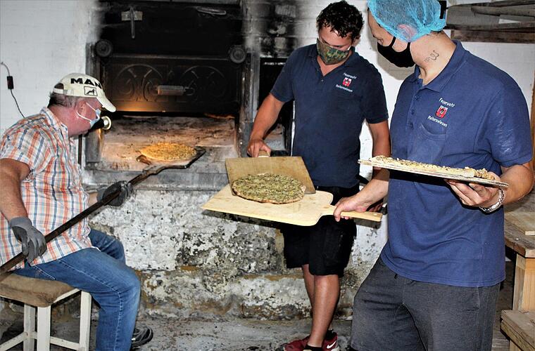 Fast vierzig Helferinnen und Helfer, aus Jugend, der Damenriege und den Aktiven sind beschäftigt, den Corona-geschädigten Feinschmeckern die Leckerei noch warm zu liefern. Fast so viele wie bei einem Großbrand, meinen die Verantwortlichen. Hubert Warmuth hat indes die Wärmebildkamera angefordert, damit der betagte Schornstein nicht etwa überfordert ist. Aber alles im grünen Bereich, zeigt das Gerät an. Also, nächste Schicht in den Backofen.