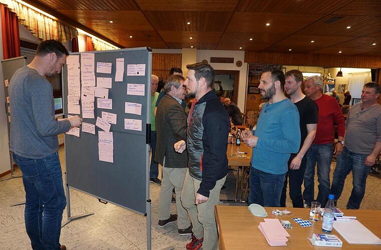 Der Workshop war keine Bürgerversammlung mit Diskussion und Vorstellung möglicher Alternativen und Konzepte. Es gab auch keine einführenden Worte, um Ideen und Wünsche zu formulieren. Nach der Begrüßung übergab Vogel das Wort an den neutralen Moderator Hans Rohrmüller (Bad Brückenau), der die Bürger einlud auf den ausgeteilten Stimmzetteln einen Punkt zu notieren, der ihnen für den betroffenen Bereich wichtig erscheint. Nach einer kurzen Bedenkzeit wurden die Stimmzettel an eine Pinnwand geheftet und die Bürger waren aufgerufen mittels zweiter Klebepunkte ihre Schwerpunkte zu setzen.