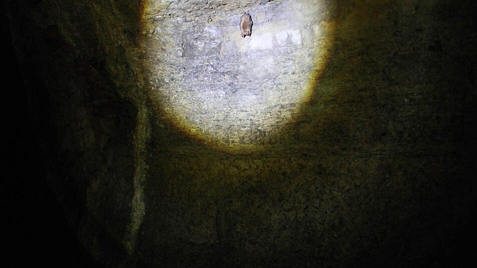 Ein halbes Jahr verbringen die Fledermäuse im Sulzthaler Bierkeller. Sie haben sich in Fugen verkrochen, hängen alleine, zu zweit oder in kleinen Gruppen von der Steindecke. Das Herz schlägt zehn Mal in der Minute.