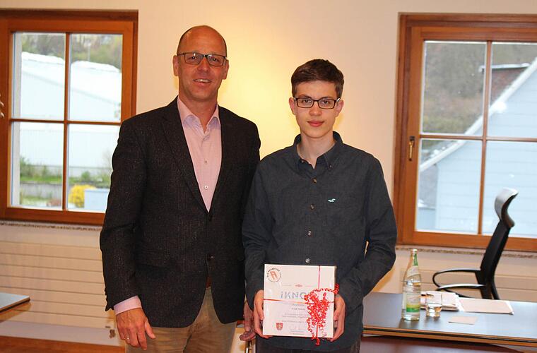 Der 15-jährige Erick Nietsch wurde in der jüngsten Sitzung des Wildfleckener Marktgemeinderates von Bürgermeister Gerd Kleinhenz (PWW) geehrt.