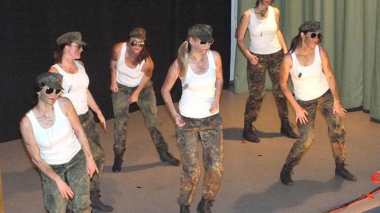 Mit martialischen Klängen zog das Damenballett ein und machte mit den Zuschauern einen Ausflug in den harten Militäralltag.