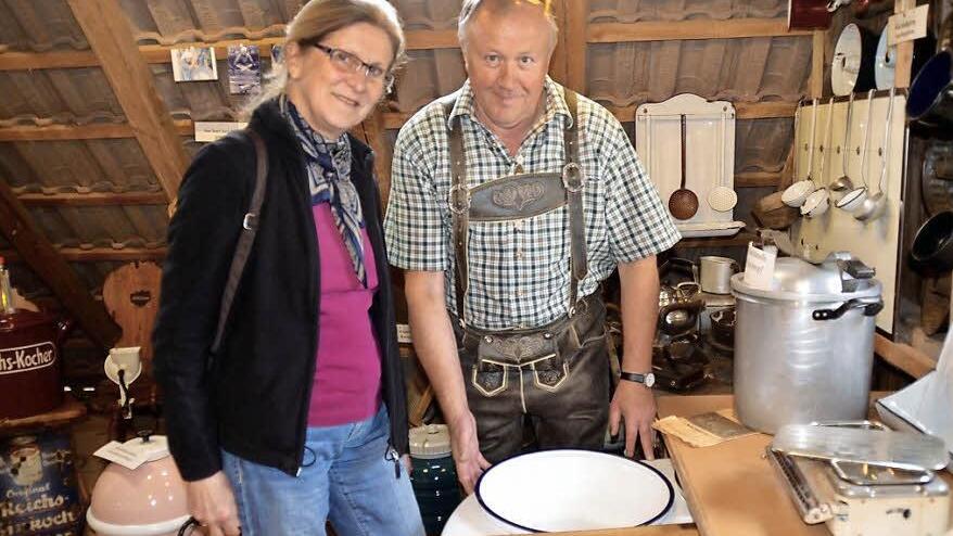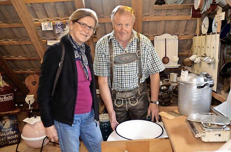 Diesmal bestaunt Karin Klabouch in der hauswirtschaftlichen Abteilung einen Tisch mit eingebauten Spülbecken. "Wenn Besuch kam und der Abwasch noch nicht erledigt war, konnte man diesen einfach verschwinden lassen", erklärt Sammler Heinrich Muth und gibt dem Schüssel-Gehänge einen leichten Schubs.