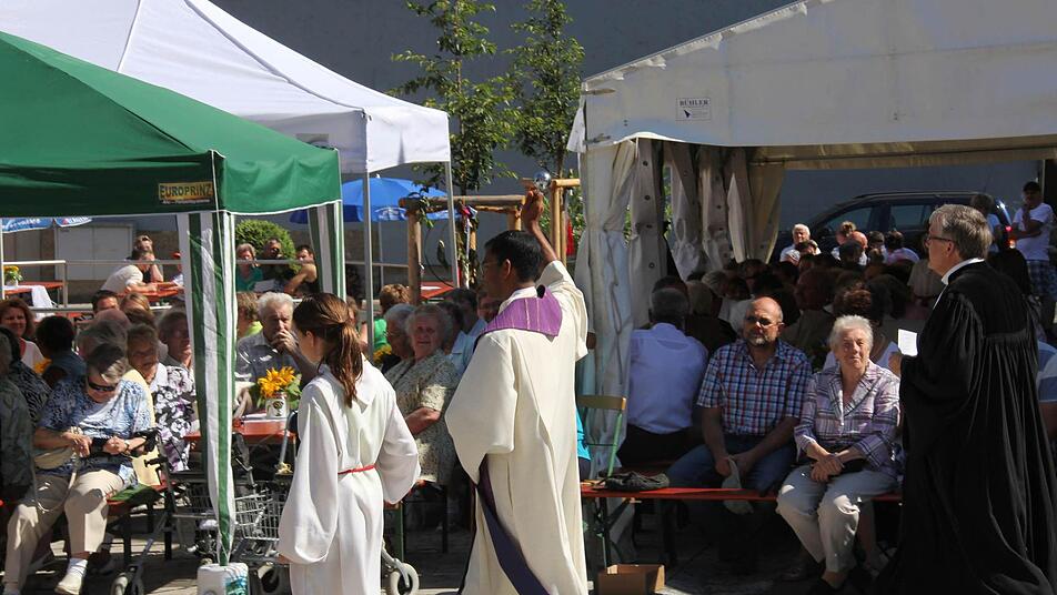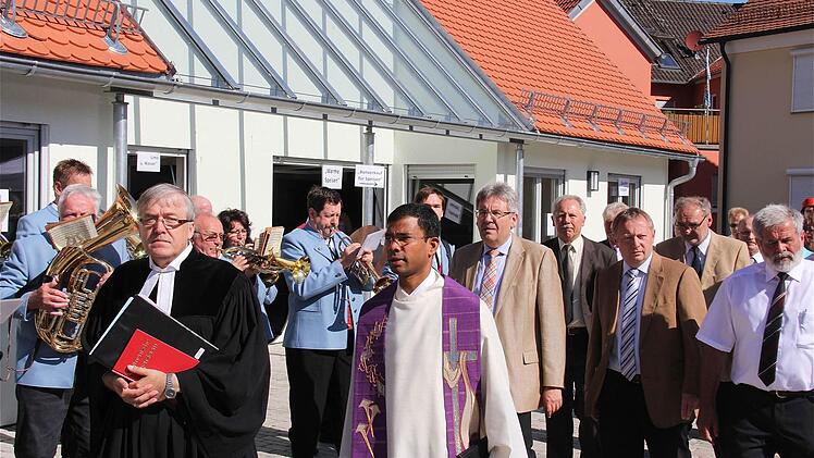 Auftakt der Einweihungsfeier bildete die Kirchenparade, angeführt von den Sulzthaler Musikanten unter der Leitung von Roland Bauer. Der Zug setzte sich an der Mehrzweckhalle in Bewegung und holte den katholischen Pfarrer Sony sowie den evangelischen Geistlichen Philipp Klein ab. Nach dem ökumenischen Gottesdienst auf dem Dorfplatz erteilten sie den kirchlichen Segen. "Alle Glieder einer Gemeinschaft sollen gut miteinander funktionieren", wünschten sich die Pfarrer.