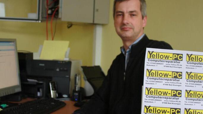 Weil Michael Cremers seine Mini-Werkstatt in Bad Kissingen Yellow-PC genannt hat, hat er Ärger bekommen mit dem großen Stromanbieter Yello (Köln) . Alleine an Anwaltskosten soll er jetzt 1780 Euro bezahlen.
