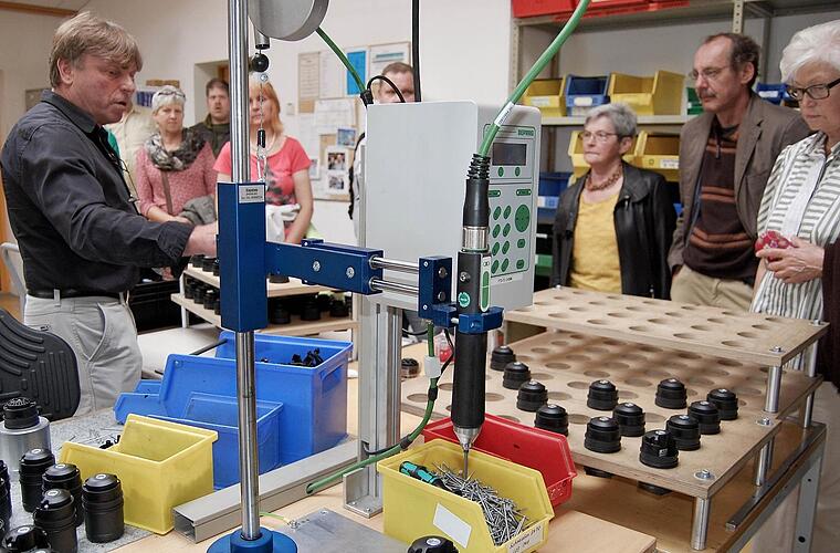 Zwischendurch hatten die Gäste mehrmals Gelegenheit zur Betriebsbesichtigung unter fachkundiger Führung. So mancher entfernt lebende Verwandte dürfte zum ersten Mal den beeindruckenden und mit modernsten Maschinen ausgestatteten Wirkungskreis seines betreuten Angehörigen kennengelernt haben.