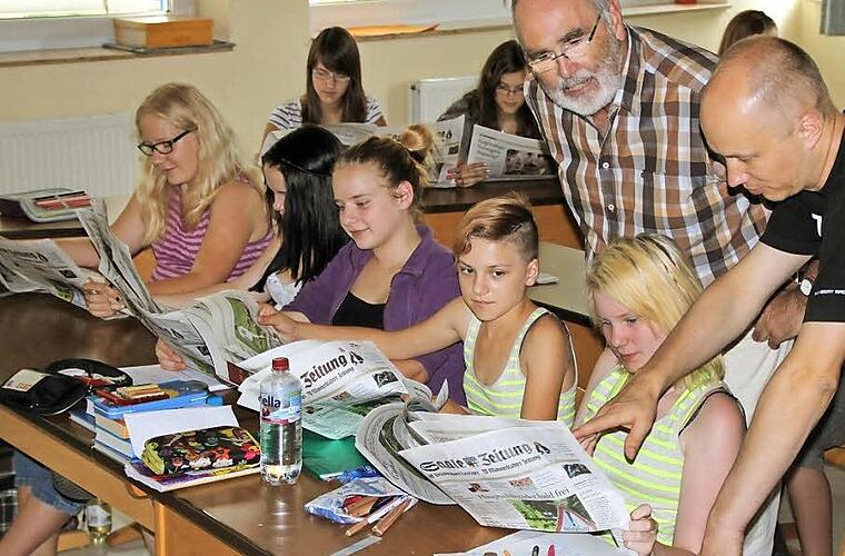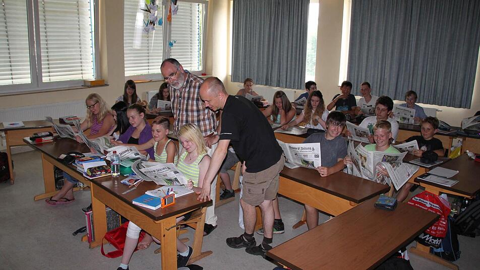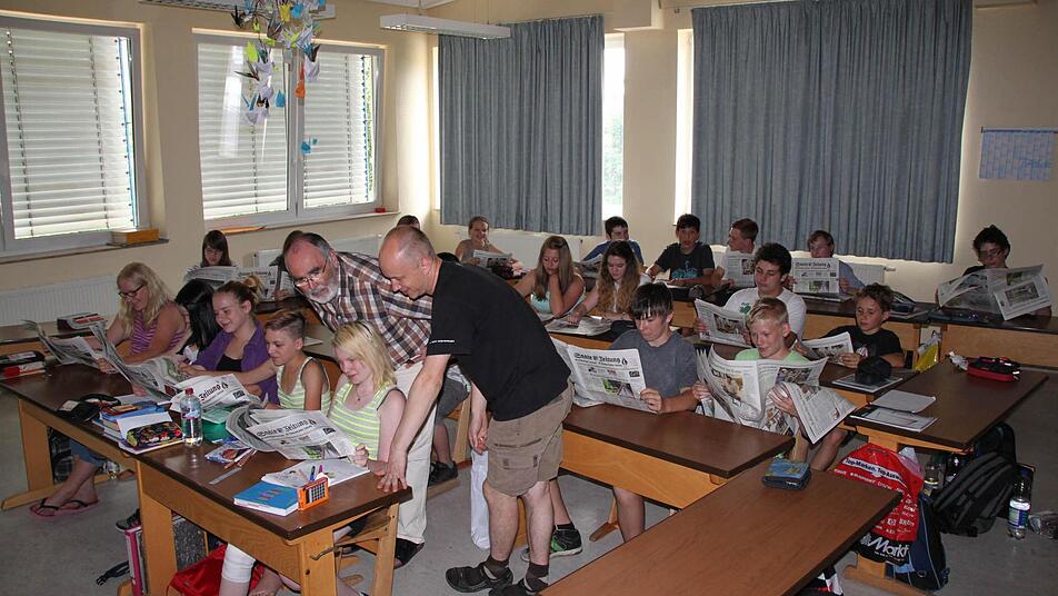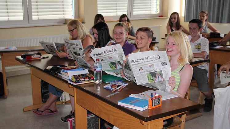 "Schon vor dem Unterricht - um zehn vor acht - lesen die Schüler die Zeitung", sagt Klassenlehrer Walter Kuhn. Täglich hinterfragen sie dabei aktuelle und vergangene Themen und Inhalte der Saale-Zeitung. Das Lesen an sich steht dabei genauso im Vordergrund wie das Verstehen von Text und Inhalt.