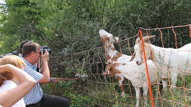 "Kleinere Winzerbetriebe aus Hammelburg haben oft nur ein paar Ar Anbaufläche", wies Landrat Thomas Bold (CSU) auf die Konzentration weniger Großbetriebe hin. "Durch die Aufgabe dieser Weinhänge hat es zu einer massiven Verbuschung geführt", so Bold. Langfristige Abhilfe soll eine Ziegenherde mit mehr als 300 Tieren schaffen.