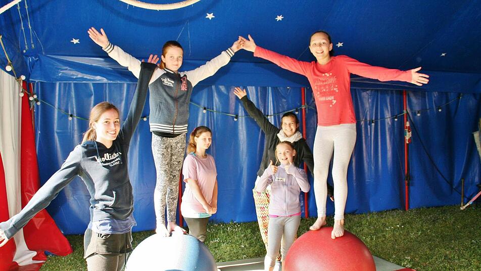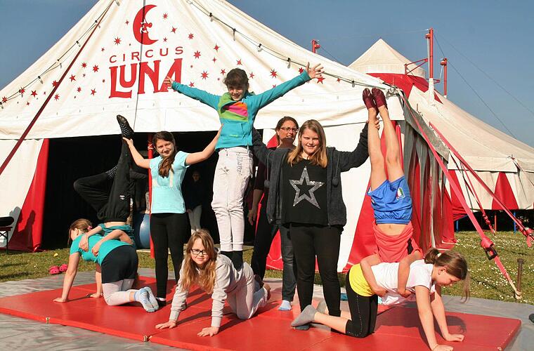 Vor dem prächtigen Zelt versuchen sich acht Mädchen an verschiedenen Pyramiden. "Die einfachen gelingen schon ganz gut", meint Hannah, "aber manchmal purzeln wir ganz schön durcheinander". Alles halb so wild, beschwichtigt Claudia Bethäuser-Roos, die Trainerin und weist auf den milde lächelnden Mond auf dem rot-weißen Zelt. Die Zirkusdirektorin ist ausgebildete Sozialpädagogin und führt seit 15 Jahren Schulprojekte in sozialen Brennpunkten, integrative Ferien- und auch langfristig angelegte Projekte durch. Auch Familienwochenenden, Mehrtagesprojekte oder Mitmachangebote bietet die in der ehemaligen Westheimer Mühle beheimatete Familie an. "Der Zirkus ist eine Schule fürs Leben" und die Pyramide, an der sich die Kinder versuchen, ein Sinnbild für das, was den Kindern spielerisch vermittelt werden soll. Die Stärkeren sollten das sichere Fundament sein und auf dem teils wackligem Grund müssen die Mittleren stabil zusammenhalten und den Kleinen und Mutigen Sicherheit geben, in die Spitze zu klettern. "Den Kindern positive Erlebnisse verschaffen, Talente verstärken, Gemeinschaft zu fördern, aber auch Durchhaltevermögen einzufordern, ist das Ziel der intensiven Trainingswoche".