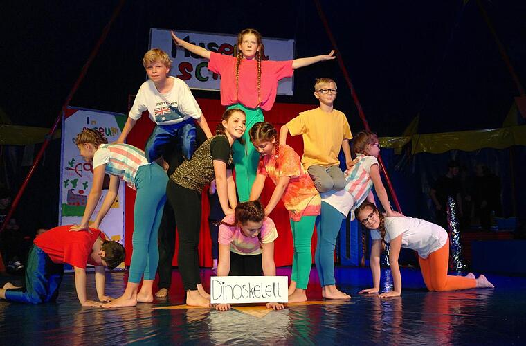 Eine komplette Zirkusaufführung stellen die Kinder auf die Beine, begonnen bei der Wahl des Themas, über die Bühnendekoration bis zu den Darbietungen selbst. Jeder hilft beim Auf- und Abbau, hält und unterstützt bei wackeligen Übungen, sei es tatkräftig oder lautstark. Bejubelt werden alle Darbietungen, auch dann wenn etwas nicht perfekt klappt.