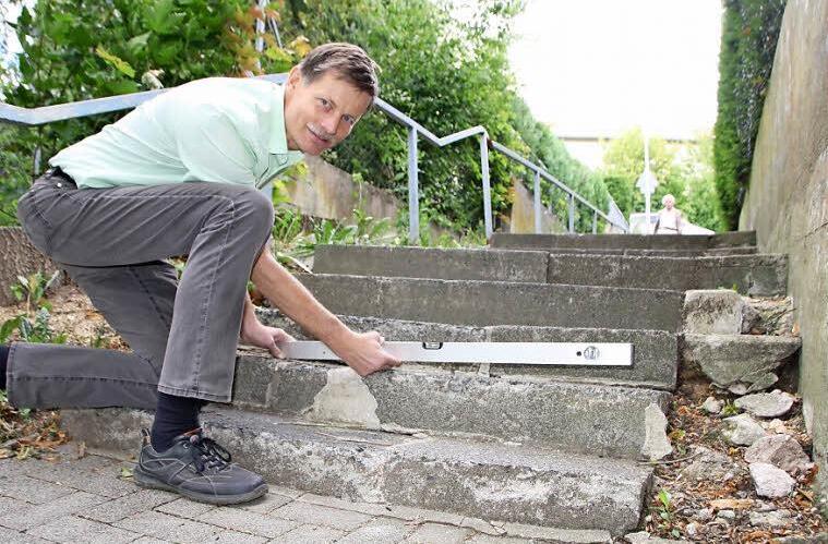 Die veranschlagten Kosten von 165 000 Euro waren vielen Räten damals zu hoch. Zudem zweifelten sie den schlechten Zustand der Treppe an. Die Verwaltung belegte jedoch, dass die Stufen zu ungleich und zu schief sind.
