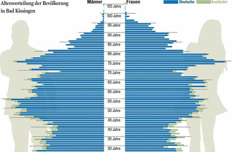 "Den meisten Zuwachs haben die Ausländer ausgemacht, trotzdem haben wir einen geringen Ausländeranteil", fasst Sachgebietsleiter Ludwig Büchner die Statistik zusammen. "Wir leben immer noch in einer sehr deutschen Gesellschaft", kommentiert Oberbürgermeister Kay Blankenburg (SPD) die Ausländerquote von nur 5,57 Prozent. Der OB freut sich natürlich vor allem über das Plus: "Der Zuwachs der Bevölkerung vor allem im Bereich der Kernstadt spricht für eine hohe Attraktivität von Bad Kissingen für Zuzügler aus anderen Gegenden Deutschlands. Das ist ein positives Zeichen für die Lebensqualität in der Stadt." Gerade wegen des Zuzugs von Senioren bleibe die Geburtenrate auch in den kommenden Jahren niedrig.