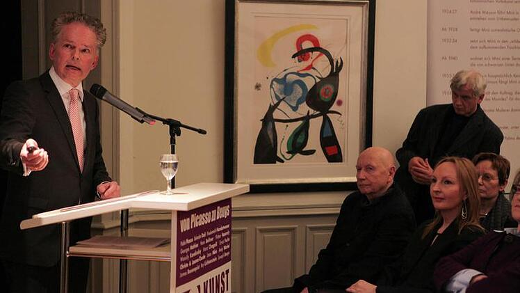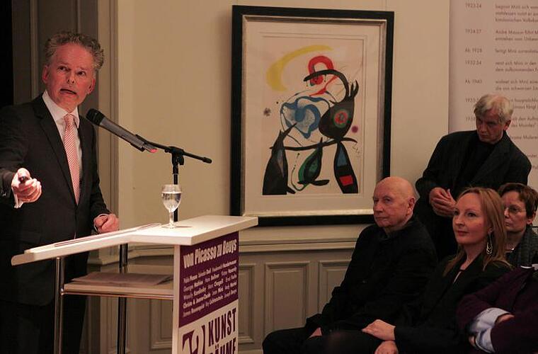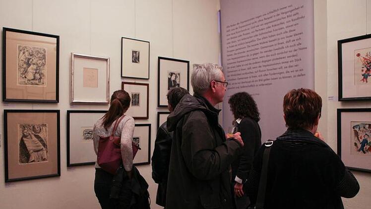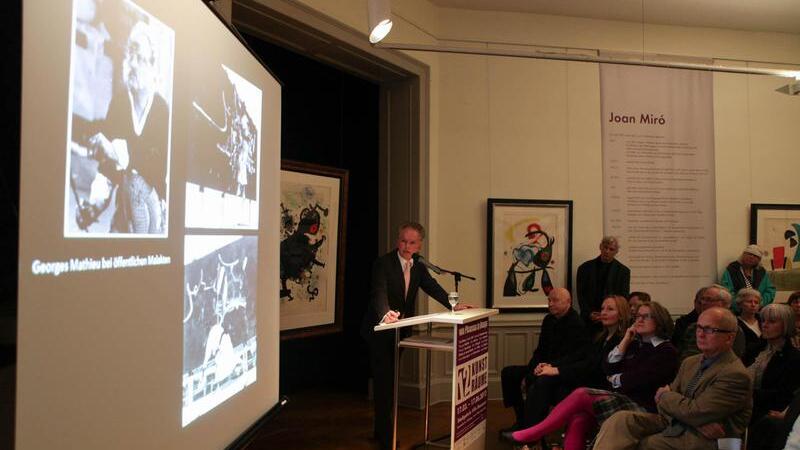 Dicht gedrängt lauschten die zahlreichen Gäste der Einführung von Professor Wolfgang Brassat, dem Inhaber des Lehrstuhls für Kunstgeschichte der Otto-Friedrich-Universität Bamberg, der die Hintergründe zu den ausgestellten Künstlern, Werken und ihrer jeweiligen Strömung erläuterte. Der Förderverein