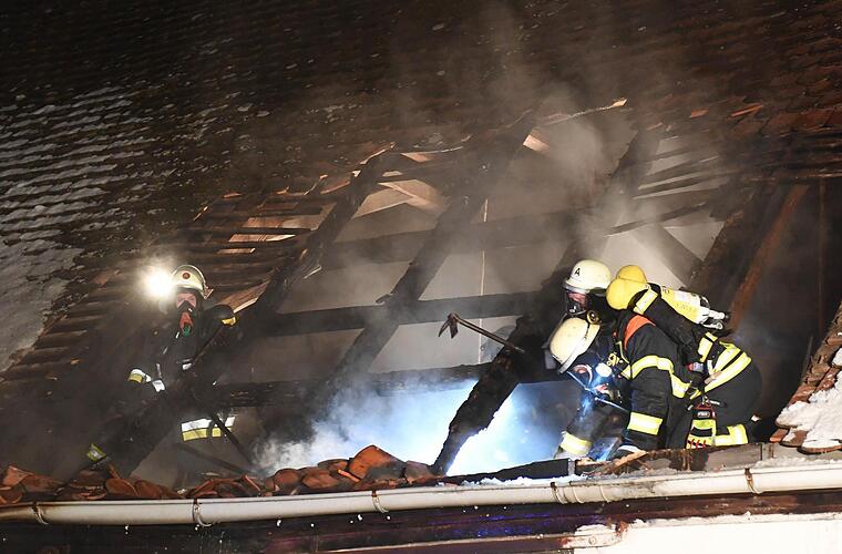 Die Integrierte Leitstelle alarmierte gegen 2 Uhr zahlreiche Einsatzkräfte zur Brandbekämpfung in die Bachgasse. Beim Eintreffen der ersten Kräfte schlugen die Flammen bereits aus dem Dachstuhl der Scheune. Vermutlich noch nicht erkaltete Asche, welche in der Biotonne entsorgt wurde, entzündete sich wieder. Das Feuer setzte darauf das Scheunentor in Brand und griff auf das Dach der Scheune über.