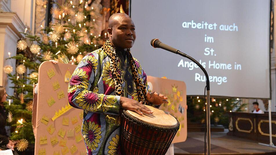Für afrikanische Sonne sorgte der Sänger und Trommler Alexis Madokpon auf der Pilgertour durch Bamberg. Präzise und gekonnte Schläge auf der Djembe gaben den Sternsingern ihren Marschtakt vor. Im Dom übernahm die Dekanatsjugendband aus Auerbach mit schwungvollen Liedern den Rhythmus.