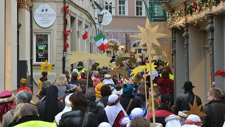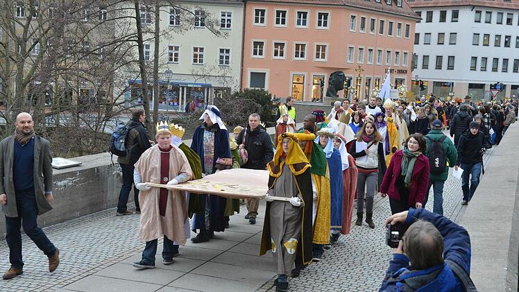 So ein problemloser Einsatz macht einfach Spaß. Das ist dem breit lächelnden Polizisten Rainer Löhlein anzusehen. Der Scheßlitzer scheint diebische Freude daran zu haben, für die Kinderschar die Autos am Kaulberg in Bamberg zu stoppen. Etwa 600 prächtig herausgeputzte Buben und Mädchen strömen aus der Pfarrkirche Unsere Liebe Frau: Sternsinger in fantasievollen Königsgewändern, mit orientalischer Kopfbedeckung oder Kronen. Mitten drin im Pulk Erzbischof Ludwig Schick und Diözesanjugendpfarrer Detlef Pötzl. Für beide ist es Ehrensache, die Sternsinger auf ihrer Wallfahrt durch die Altstadt zum Dom zu begleiten.