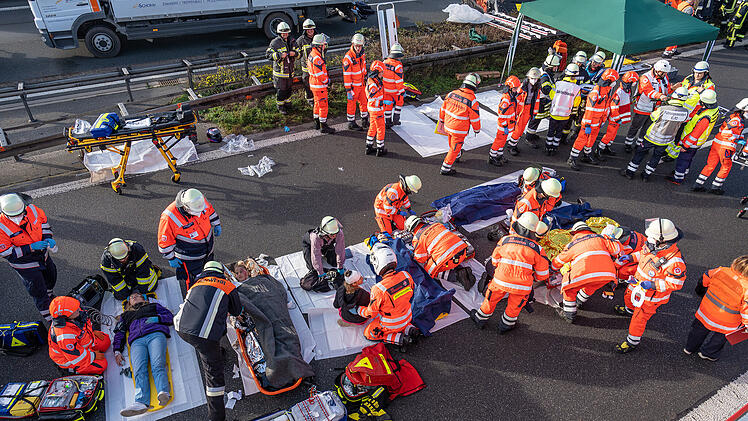 Auf der A3 zwischen Schlüsselfeld und Höchstadt hat es am Sonntagvormittag (30. Oktober 2022) eine riesige Einsatzübung von Feuerwehr und Rettungsdienst gegeben. Dafür wurden sogar geschminkte Darsteller eingesetzt.