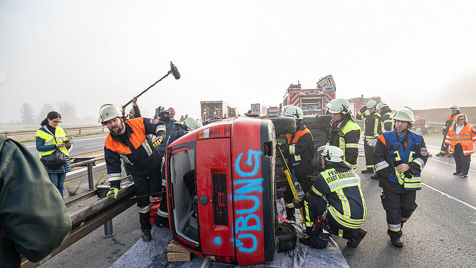 Wichtig sei gewesen, dass Zusammenarbeit gut funktioniere. "Das Resümee ist gut", zog Weber zum Szenario auf der A3Bilanz. Das Ganze sei "professionell und gut organisiert" gewesen. An der Crash-Übung bei Schlüsselfeld seien knapp 250 Einsatzkräfte beteiligt gewesen, gut 100 davon von der Feuerwehr.