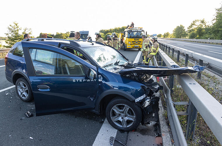 Wegen Aufräumarbeiten hat sich der Verkehr auf der A70 km Landkreis Bamberg am Dienstagabend (21. Juni 2022) gestaut. Als ein Transporter anhalten musste, krachte ein Auto von hinten mit hoher Geschwindigkeit in das Fahrzeug.
