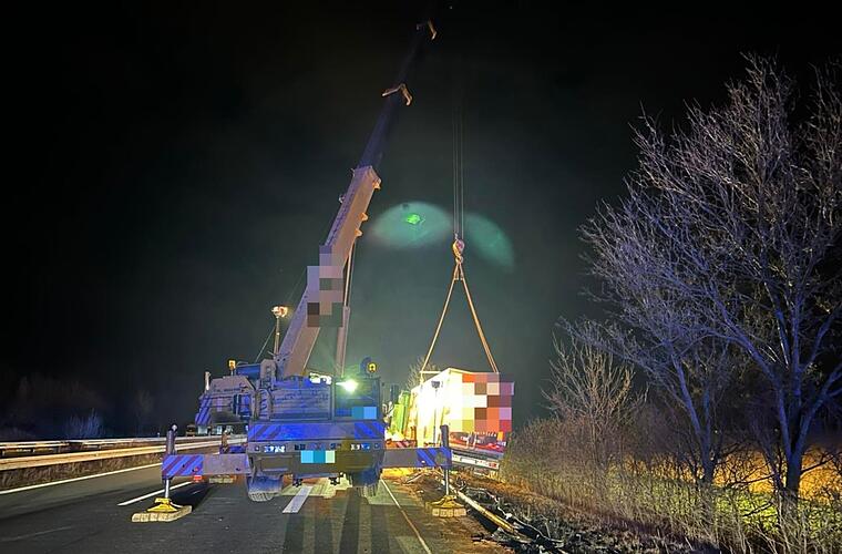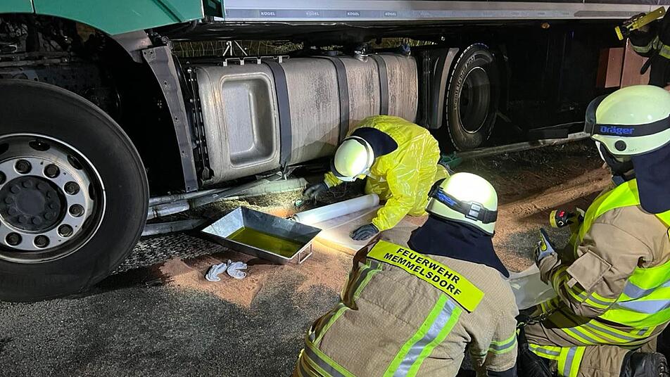 Durch die Kollision mit der Leitplanke riss laut Polizei ein Tank der Zugmaschine auf, wodurch rund 500 Liter Diesel über die Fahrbahn und in die Kanalisation liefen. Neben den Feuerwehren waren deshalb auch Wasserwirtschaft und Autobahnmeisterei vor Ort. Zur Sicherung der auslaufenden Betriebsstoffe wurde im Laufe des Einsatzes die ständige Wache Bamberg nachalarmiert, erklärt die Feuerwehr Memmelsdorf. Mit zwei Autokränen sei es einer Fachfirma gelungen, den Lkw zu bergen. Um circa 22 Uhr war die Feuerwehr Memmelsdorf wieder einsatzbereit am Standort, heißt es weiter.