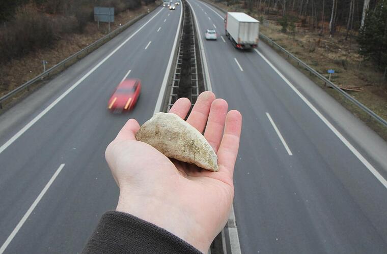 Ein Unbekannter hat von einer Brücke über die A73 bei Bamberg Gegenstände geworfen. Sie krachten durch die Windschutzscheibe eines Autos. Der Fahrer wurde verletzt.