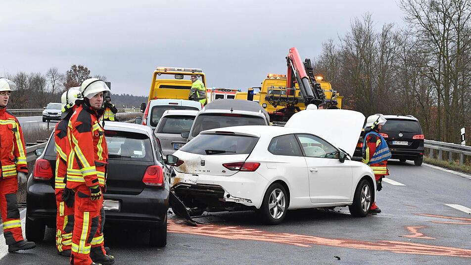Auf der A73 bei Breitengüßbach kam es am Dienstagmorgen zu drei aufeinander folgenden Unfällen. Insgesamt wurden 18 Menschen verletzt - zum Teil schwer.