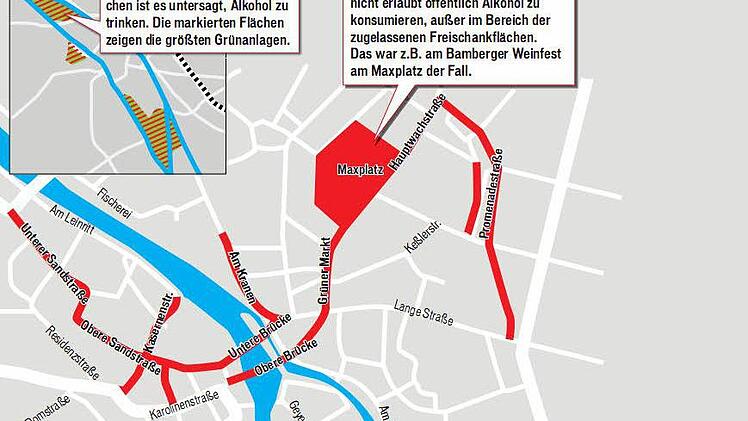 An einigen zentralen Treffpunkten in der Bamberger Innenstadt ist es verboten, Alkohol zu trinken. Allerdings weiß nicht jeder, wo.